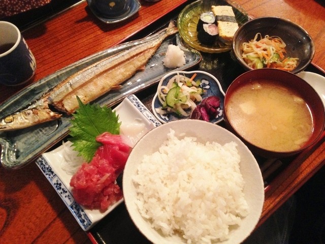 今回注文したのは僕が「刺身と焼魚定食」(750円)、