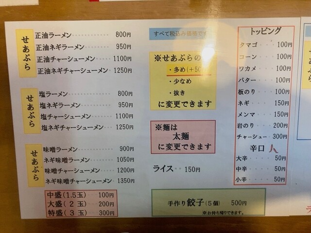 醤油ラーメン650円+中盛り(1.5玉)(100円)