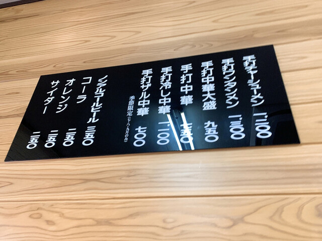 店内に入り「手打ちチャーシューメン 1,300円」を注文し席へ。前回来た時より100円値上がりしてますね。小麦をはじめ、いろいろな物が値上がりしているので仕方ないですが... 東京と値段的に変わらなくなってきてますね。