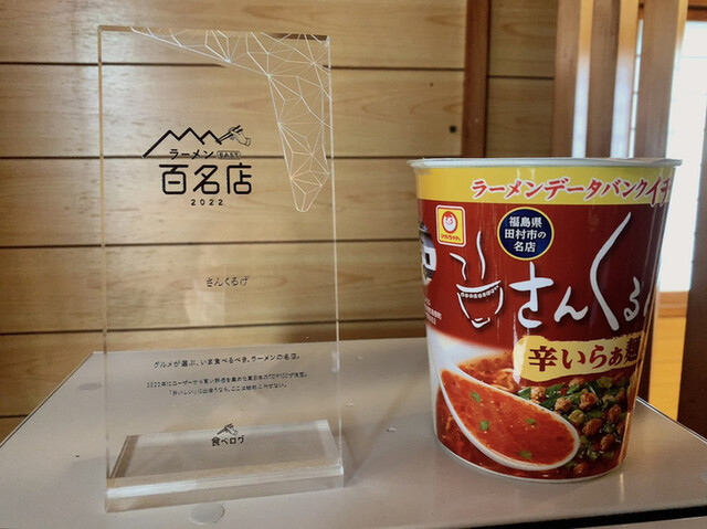 店内に入ると直ぐに券売機があり目的の「辛いらぁ麺」をポチッと押しカウンター席へ。カウンター4席、テーブル席(4人)1つの狭い店内。ちなみに「さんくるげ」は「方言 ひっくり返す」とか、両親が営んでいた鮨屋を改装しお店を出されたとの事です。