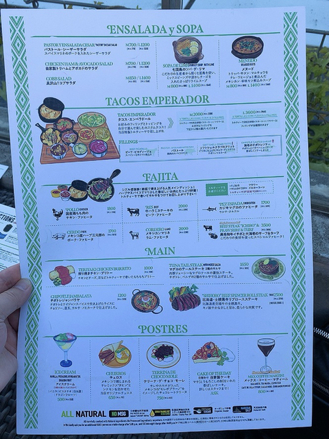 続いて、人気のコブサラダ、盛り付けがキレイですね。そして、やはり、メキシコ料理といったらタコス。タコスも種類あり、生地は2種類から選べ、メキシコ料理を食べたという感じになりますね。
