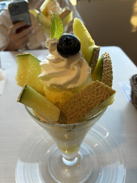 メロンパフェと葡萄のパフェを二個食いしてしまった。メロンは甘くてジューシー、葡萄は酸味のバランスも良い葡萄やシャインマスカットもとても良かった。