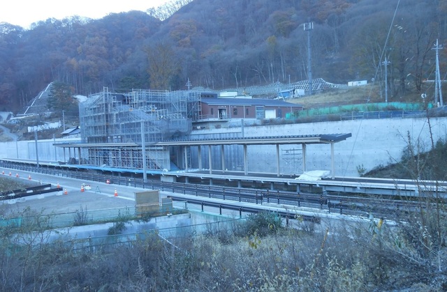 新駅裏手、道路を作っている? 山の紅葉は綺麗だった