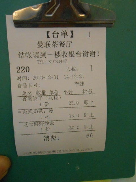大衆食堂でランチ(中国は多分全て喫煙店) (2014/01/05)