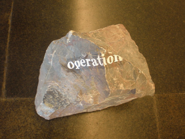 近くで見ると、石1つ1つに写真⑧のように単語が印字されている。