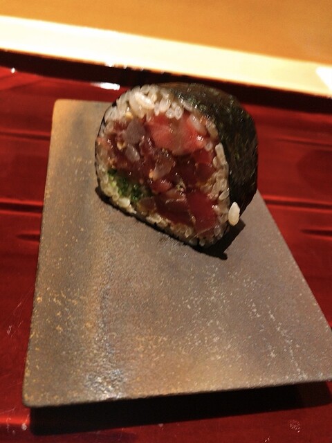 赤身、中トロ、すきみ、ごまとべったら。3部位それぞれ別の味付けをしているとの説明があったが失念。。
