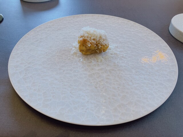たしかに白子をしっかり入れてくださっているんだな、という超濃厚でパンチある一品。空腹のときいただいたら感動ものだろうが、コースの終盤には重くもある。