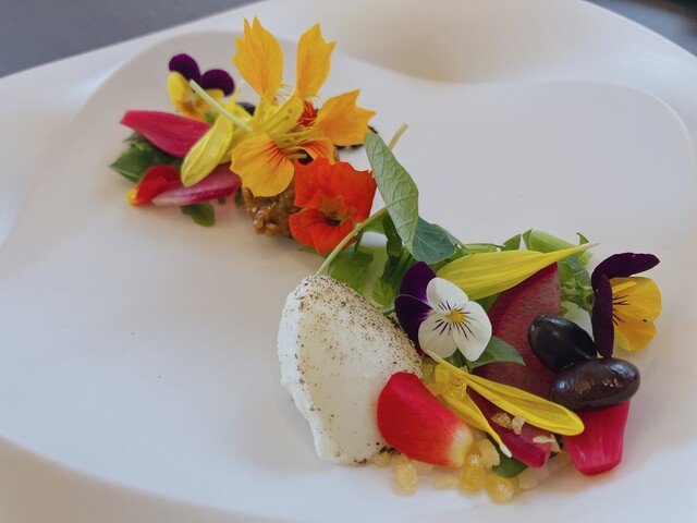 全体的に北欧を彷彿とさせるイノベーティブで、花を使った美しく可憐なプレゼンテーションや、虫を使うところ、野山の幸(なんとシェフ自ら採ってくる)を多用するところなど、コペンハーゲンのNomaやGeraniumの感動とシンクロする部分が多かった。