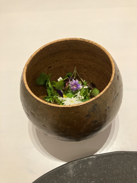 ☆9付け合わせの野菜。とても可愛らしい花々で構成された美しいプレゼンテーション,デンマークの名店を彷彿とさせる。