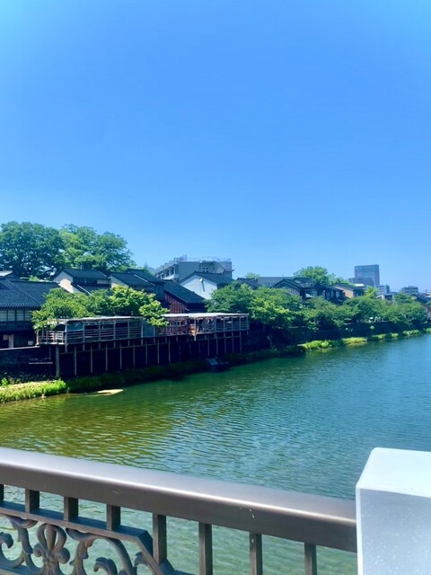 浅野川のせせらぎと煌めきを眺めながらの食事は最高