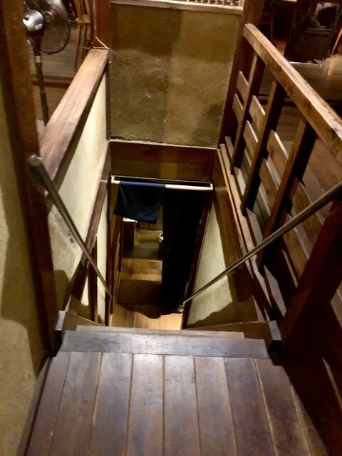 一階の厨房から料理を運ぶ階段は急で、いつも給仕するのが大変と思うが、やはりこの席を選んでしまう。