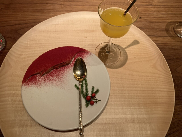 飲み物はアルコールのペアリングのほか、お茶のペアリングというのも始まっていましたが、今回は参加した4人ともアルコールのペアリングを選んだので、お茶のペアリングを見ることはできませんでした。