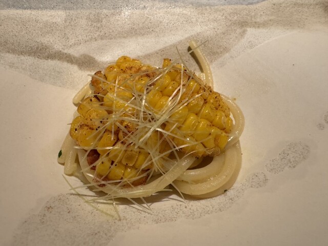 メインの前のお口直しに、匹見のワサビを使ったパスタが出たり、緩急(と言っていいのかわかりませんが)使い分け、一品一品の楽しみがあるコースになっています。