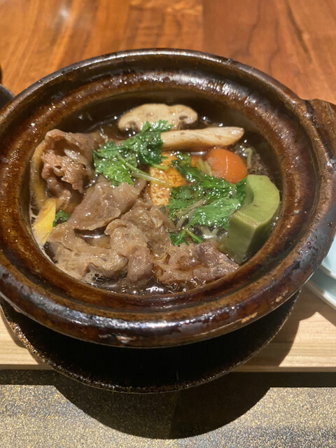 今回も、どの料理もかなり美味しくて大満足。特に沖縄の食材を上手に和食仕立てにする技は流石。お刺身も美味しいのですが、私のお気に入りは、締めのすき焼鍋と卵!都内の美味しいすき焼きを上回ります。一緒に提供される釜炊きご飯は、敢えて古米を熟成する拘り、もちもちで旨すぎます。(^^)