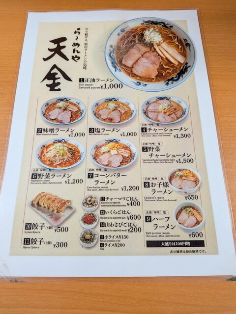 表面を覆う熱々なラード層。この油感が独特で天金のラーメンの個性を際立たせてます。スープは豚骨ベースですがマイルド飲みやすい。ビシッと立った醤油ダレの旨味が更に食欲を加速。麺は旭川特有の低加水の縮れ