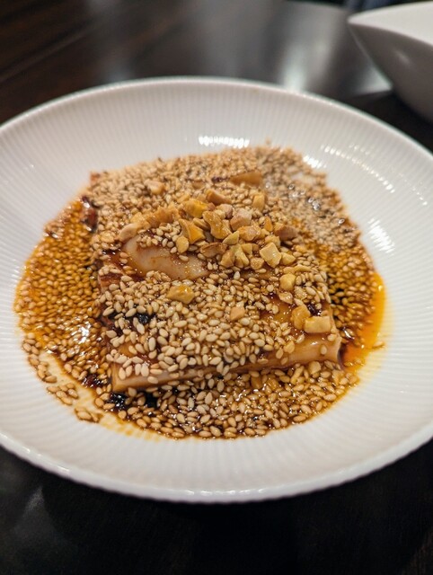 先ずは生レモンサワーで喉を潤しつつ、よだれ鶏と 海老ワンタンをつまみます。よだれ鶏は酸味と辛味の絶妙なバランス。海老ワンタンとプリップリな海老に香り高いスパイシーなタレ。どちらも高級中華で出て来てもおかしくない完成度の高さ