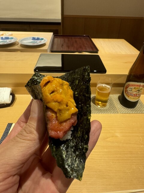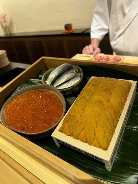 中々予約が取れないお鮨屋さんで、店内は海外のお客様が多く、大将はもちろんの事、スタッフの方々も英語などで対応されてます。