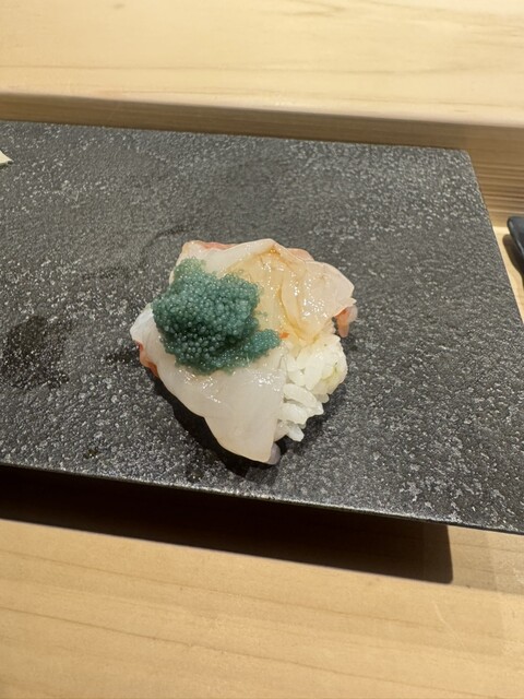 海ぶどうやワカメのつまみを食べながらのお酒は美味しく、早々に握りが出て、その後つまみ的なお料理と握りが織り混ざって提供されます。
