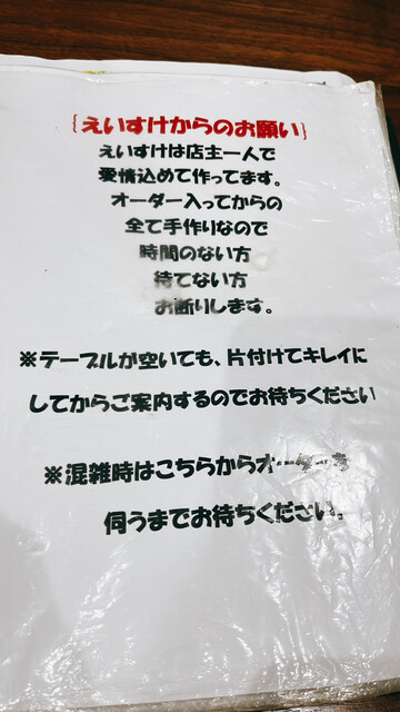 ワンオペなので、時間に余裕持ってくれとメニューに書いてあります。