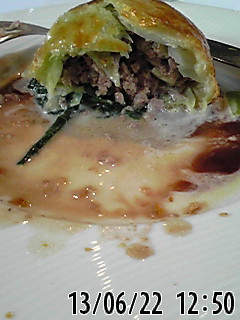 メインは、パイ包み、中は、ロールキャベツのような感じで、豚肉といろんな具材が