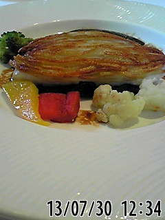 メインは、お魚が交代で、平目。の上にポテトを乗せて、グリルしたもの。