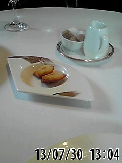 食後の珈琲は、エスプレッソ風の濃さで、最後のプティフールの胡桃のマドレーヌも