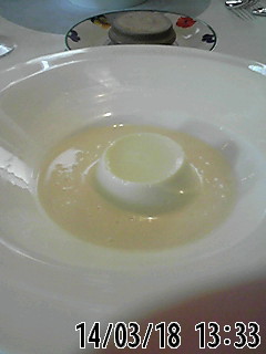 前菜のポタージュは、玉葱の甘味が美味しく、ホワイトアスパラのプリンとの