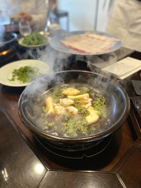 メインの熊には、これでもかというほどの花山椒を投入。贅沢すぎます。脂身たっぷりの熊肉は濃厚で甘味があり、それに合わせる出汁には蜂蜜が入っているのだとか!熊に蜂蜜…クマのプーさんやん。いや、とてもマッチしているのです!いくらでも飲めてしまう美味しいお出汁でした。かなりのボリュームでしたが、シメのおうどんまでペロリです。