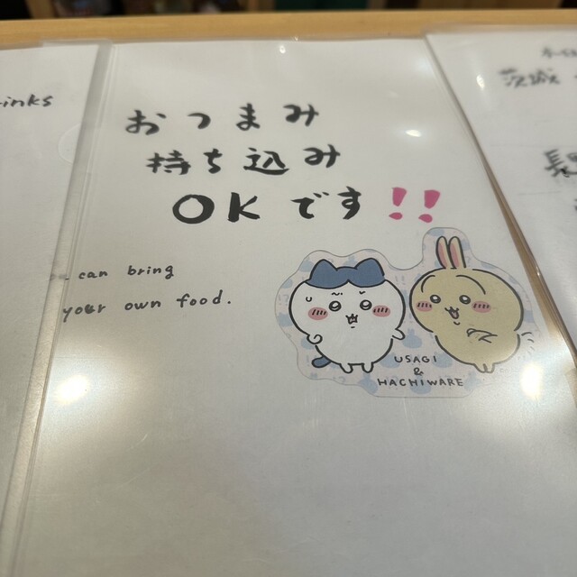 店内に入ってから知ったのですが、こちらはおつまみ持ち込みOKとのこと。