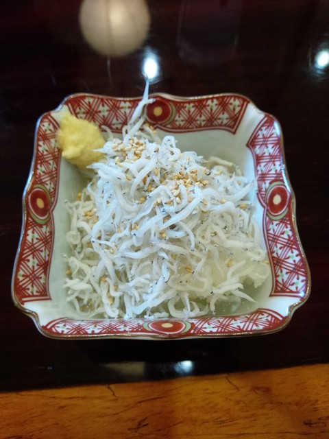 お酒のアテにはこれ!!。シラスが溢れんばかりに盛られており、大根おろしも自己主張してます。七味唐辛子をチョイ足すとグー!!。