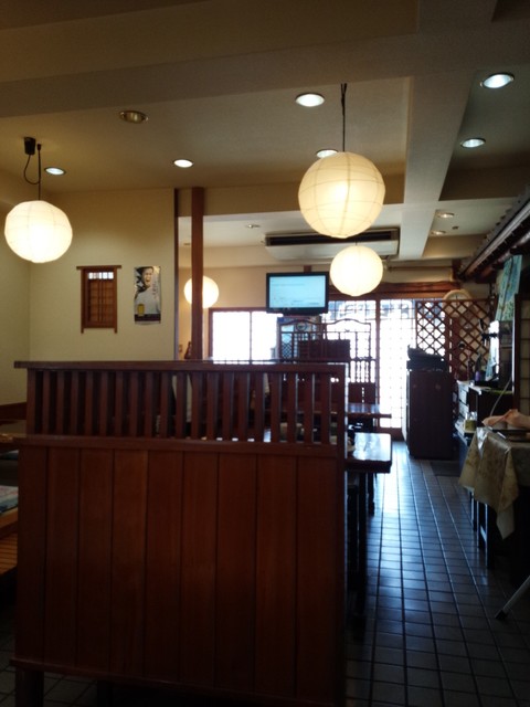店内は四人掛け座敷×4 四人掛けテーブル×4となっています。マスターは料理、おばちゃんが接客と二人で切り盛りしています。店内は畳もテーブルも清潔です。