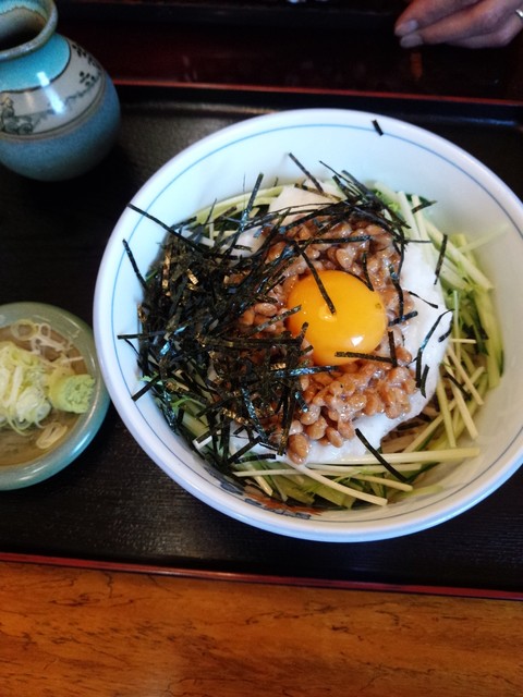 納豆はド~ンと1パックを使用し、雪景色の中の朝日の様に豪快にとろろと卵を乗せています(笑)。『国産蕎麦粉』の蕎麦は蕎麦らしい蕎麦に仕上がっておりますよ。