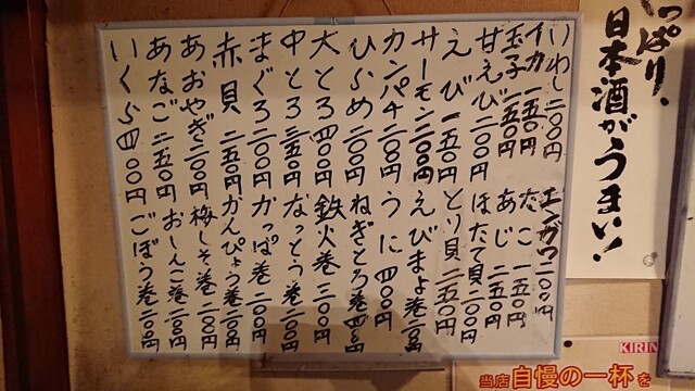 いつも書いておりますが、ここで食べて頂きたい特筆ネタは川崎南部仲卸から仕入れるマグロ。マグロといっても美味な本マグロ!!、それが300円程度で頂ける事は満点。大トロは溶けます。