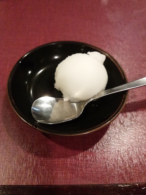 食事の最後にはデザ-ト(レモンシャ-ベット)付きと至れり尽くせりです。