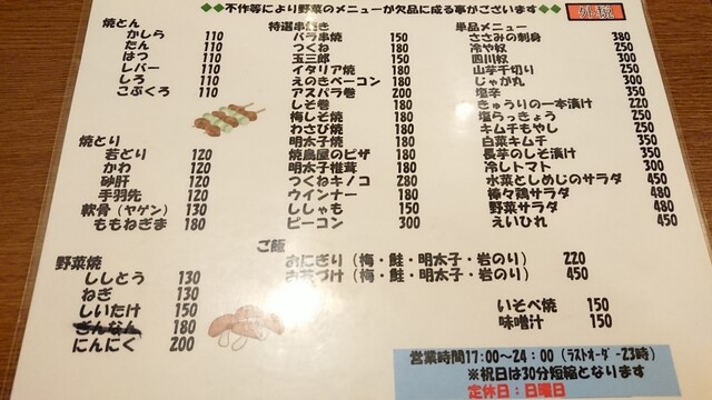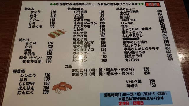 あと『季節の焼き鳥』というのもあります。今日は美味しい『新タマネギ』でした。