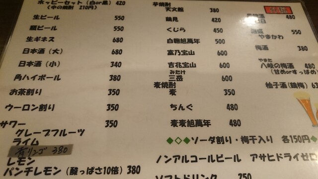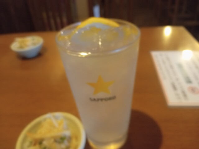 その名の通りパンチの利いたレモンサワ-。酸っぱさ10倍が暑さに弱った老体に染みます。