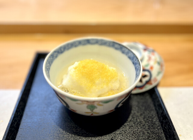 蕪蒸し(地物舌平目、1時間前の採れ立て蕪、自家製カラスミ香煎)