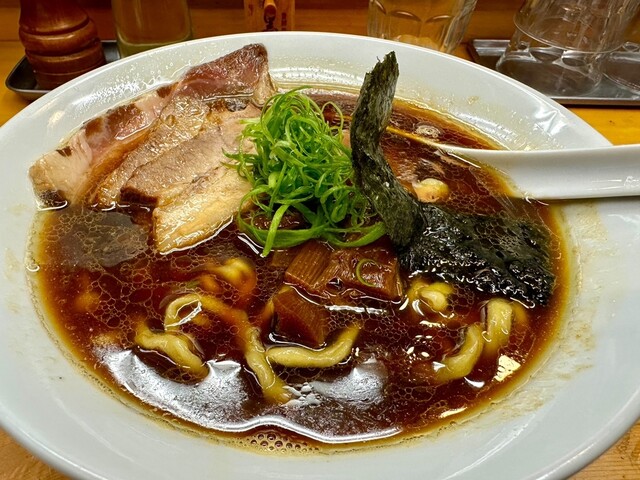 ガツンと出汁とカエシでスープを飲む手が止まらない