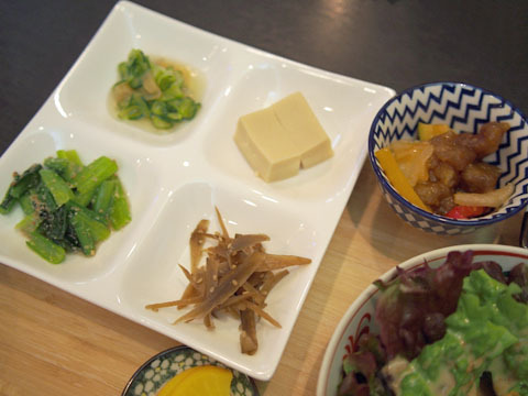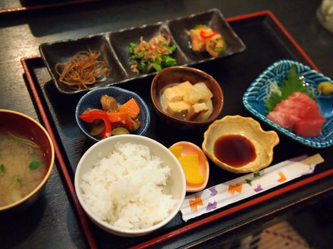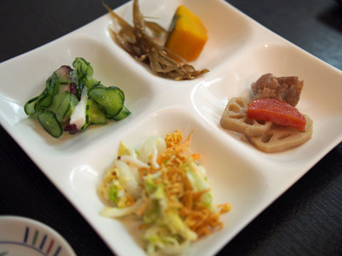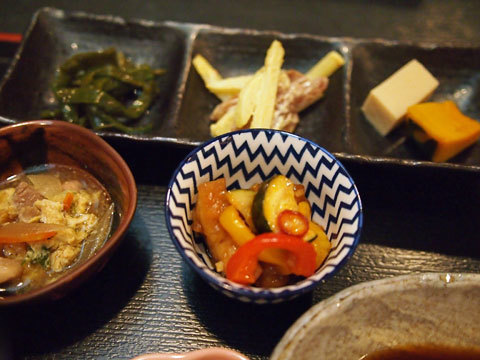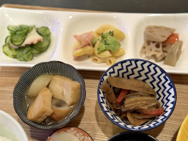 どちらも5種類のおばんざいと、ごはん、お味噌汁がついて、見た目も楽しめます。