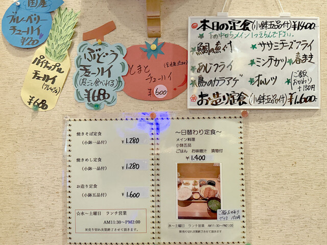 他にも、焼きそばや焼きめしの定食が1280円でありますが、これらは小鉢1つということです。