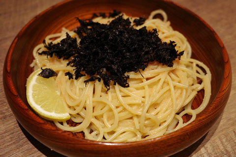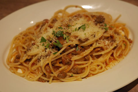 大感謝祭の日に辛子明太子と高菜のスパゲッティと”朝市"のミートソースをいただきました。