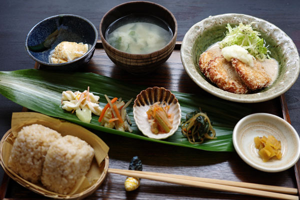 田舎定食(豆腐入りミンチカツごまだれおろし)