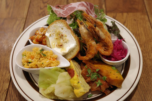 パスタかメインを選んで、小さなスープ、前菜盛合せ、パンが付きます。