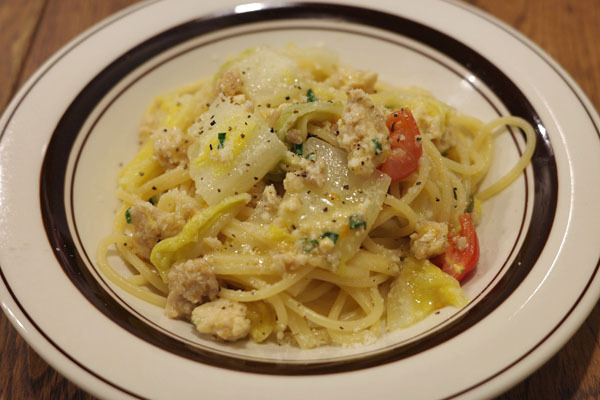 丹波鶏ひき肉と旬野菜のラグービアンコ