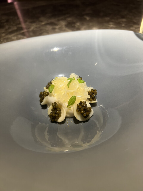 キャビアや白トリュフといった高級食材のプレゼンテーションがあり味見などの嬉しいサービスが多かった。全体的に料理は繊細さがあり、なおかつメイン料理の鴨など大胆なポーションがありとても満足する料理でした。