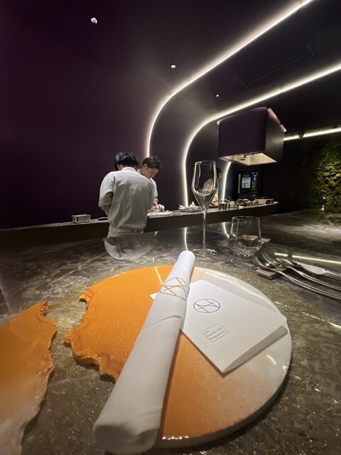スペーシーな感じの非日常空間は広がるオープンキッチンになっており、楽しましていただいた