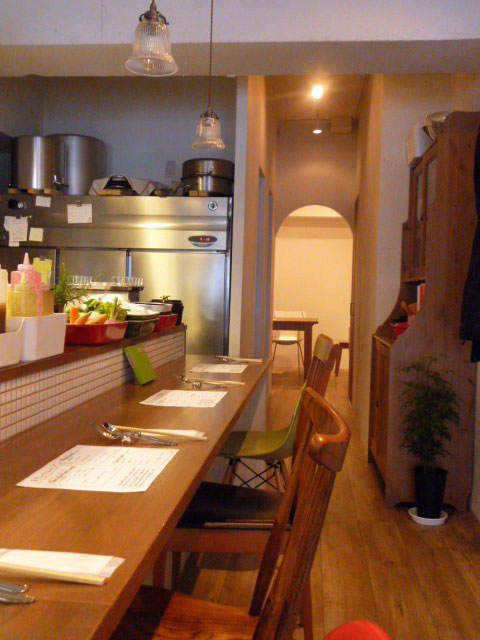 ランチはプレートとパスタとコースの3種類。お店の方が丁寧に説明されます。1200円のプレートランチをお願いし、撮影の許可を得てお店の写真を撮っていると「これもお願いします」と夜メニューを持ってこられました。(^-^) ★クリックで拡大