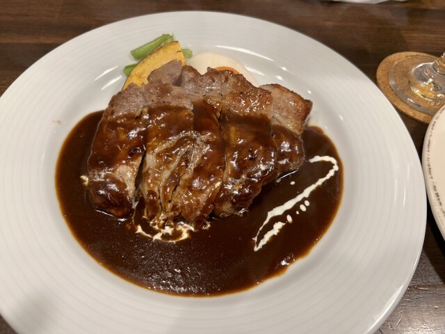 ブルスケッタは生ハムの塩味、スープはオニオンの甘さ。無駄な味付けのない上品な味。ポークチャップはケチャップではなくデミグラスソース。このソースといい付け合わせの温野菜といい丁寧な仕事。私好みの味。