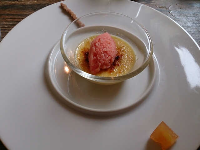 2皿目はブラッドオレンジのグラニテとブリュレ。