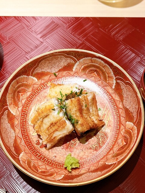 最高級ブランド鰻を切る音がザクッと。食う前から美味い。それを皮で巻いて北京ダック風に。独創的ですが最高にうまい。